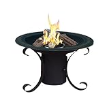 The mendocino steel fire pit uses gas for fuel instead of natural wood, a safe alternative to wood burning fire pits. each outdoor heater is made of heavy duty steel with a round top and beautiful scroll work on the legs. this firepit conveniently runs on propane, using a 1 lb. tank (not included, but available at many retail stores) with approximately 20,000 btus, generating warmth up to 10-feet away, and running for approximately 6-8 hours on low, and 1-3 hours on medium. includes lava rock and ceramic log. manual ignition and adjustable flame for easy temperature control. the fire ring is made of stainless steel. assembly level/degree of difficulty: no assembly required..../ Bond 66034 Mendocino Steel Fire Pit With Lava Rock / gas fireplace